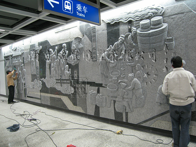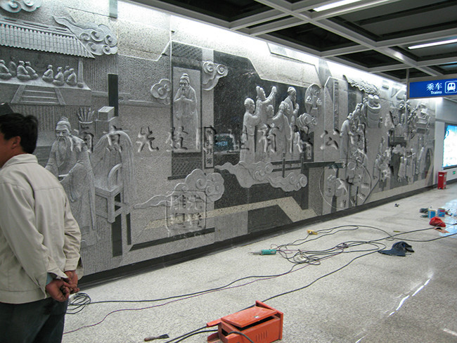 南京地鐵鐘靈街站浮雕安裝中